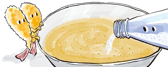 튀김 반죽에 물 대신 탄산수를 섞어주면 더 바삭한 튀김을 먹을 수 있다. 탄산 기포가 튀김옷 식감을 좋게 만든다.