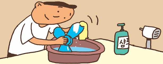 여름에 쓴 선풍기를 치우기 전 망과 날개를 분리한 뒤 샴푸 탄 물로 씻어보자. 세척 효과도 좋고 보관할 때 먼지도 덜 붙는다.