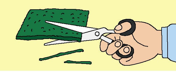 수세미는 2~3일에 한번씩 모서리를 가위로 잘라서 써보자. 세균 번식이 줄어 더 오래 쓸 수 있다.