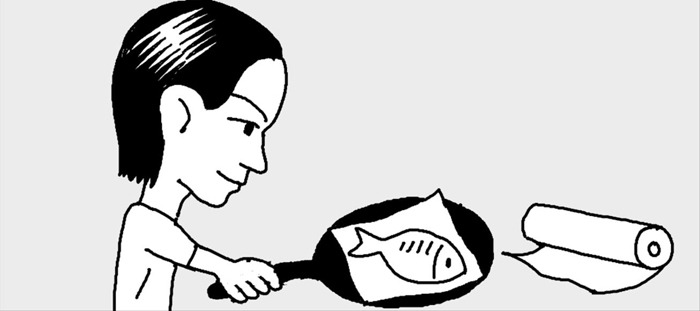 프라이팬 위에 호일을 깔고 기름을 바른 후에 생선을 구우면 뒤처리가 깔끔하다. 두꺼운 생선은 포일로 완전히 감싸 구우면 잘 익는다.