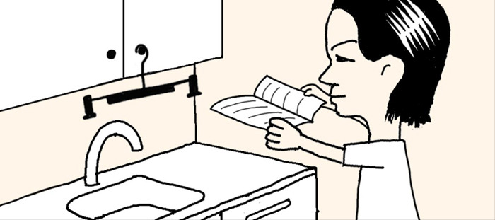 바지걸이의 고리를 주방 위쪽 서랍장 손잡이에 걸고, 집게에 요리법을 적은 종이나 책자를 물리면 요리책 고정대가 된다.